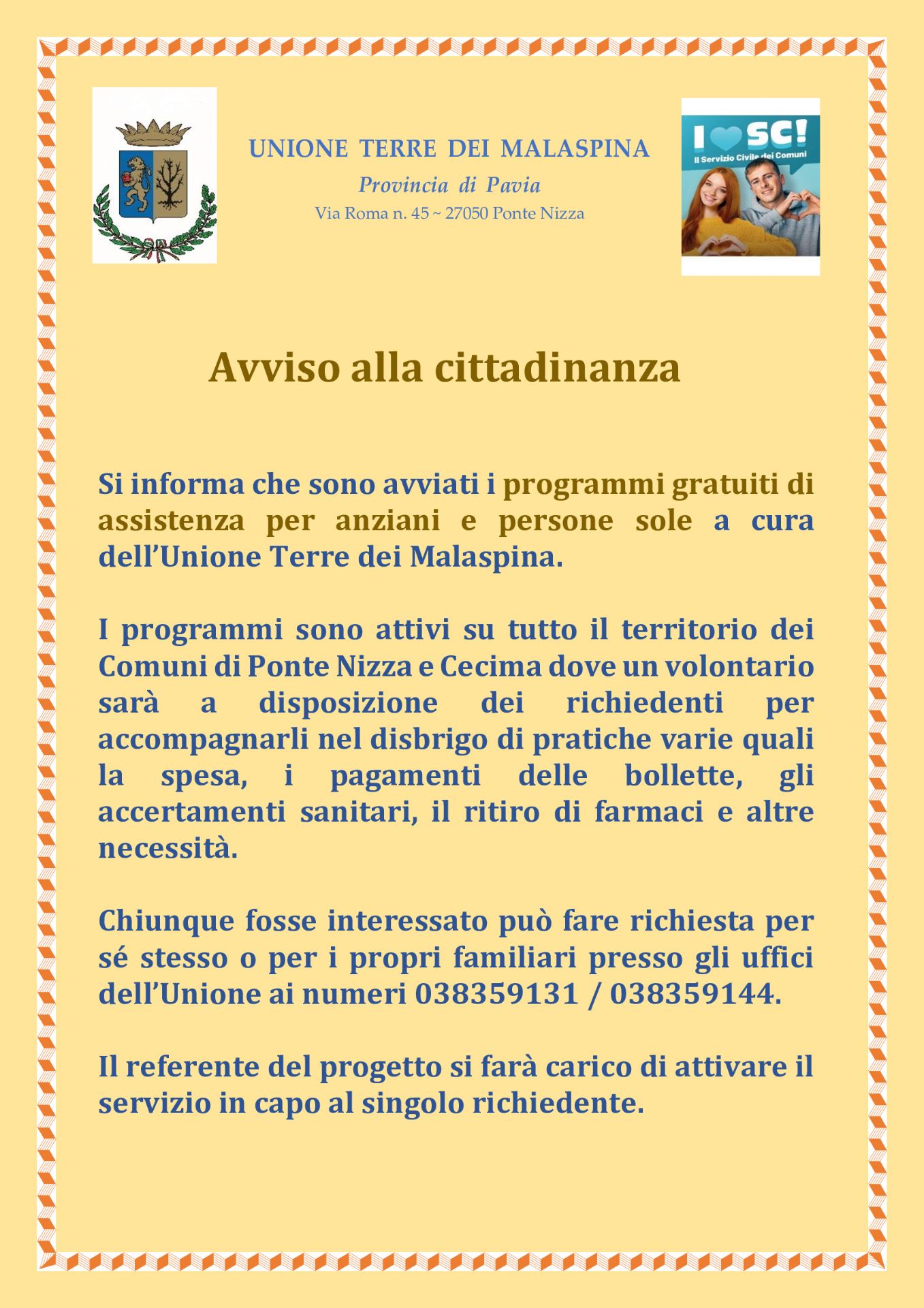 Grazie al servizio civile universale, sono avviati i programmi di assistenza sul territorio dell'Unione.