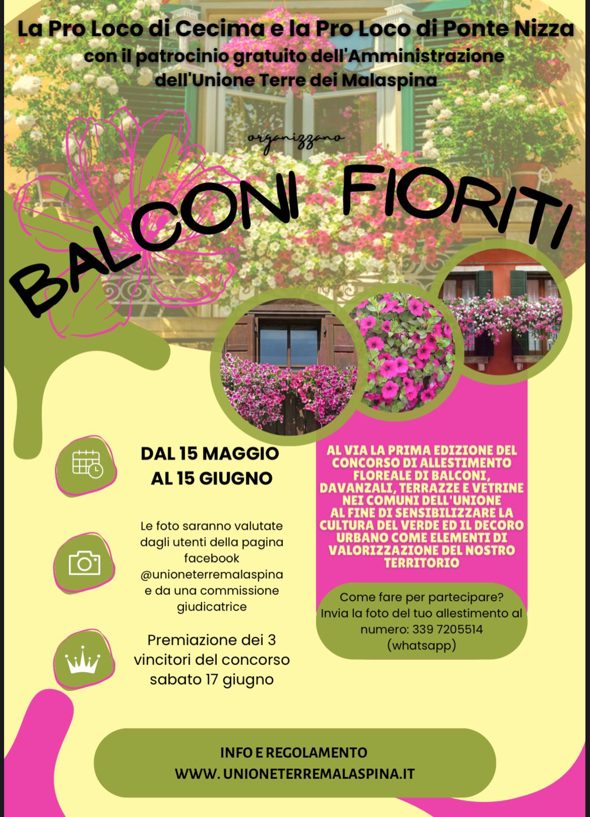 Prima edizione del concorso Balconi Fioriti nei Comuni dell'Unione Terre dei Malaspina